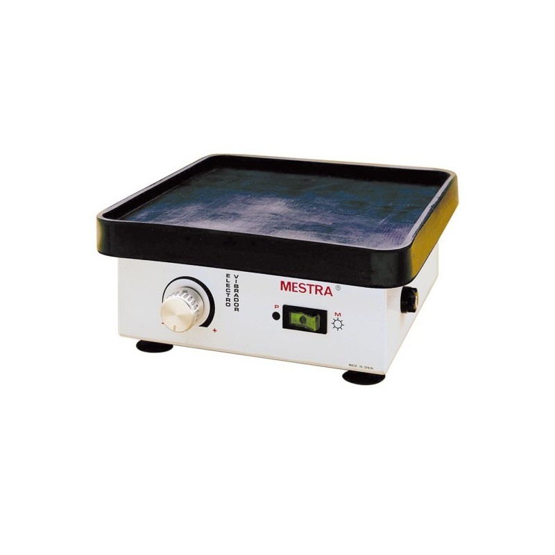 Fabricado en chapa de acero. Pintura plastificada (Epoxi). Con interruptor de paro y marcha luminoso. Potenciómetro regulador de vibraciones progresivas +. Apoyo sobre ventosas adherentes. La placa de trabajo es de goma sobre cuerpo metálico.CARACTERISTICAS:Tensión: 230 V, 50/60 HzFusible: 1,5 ADIMENSIONES:Superficie de trabajo: 220 x 220 mmAltura: 105 mmPeso: 6,3 kg