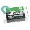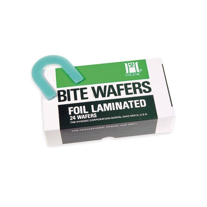 Una hoja de aluminio laminada entre dos capas de cera blanda para mordida. Disminuye la distorsión y evita la oclusión final. No necesita calentamiento.Caja de 24 obleas.