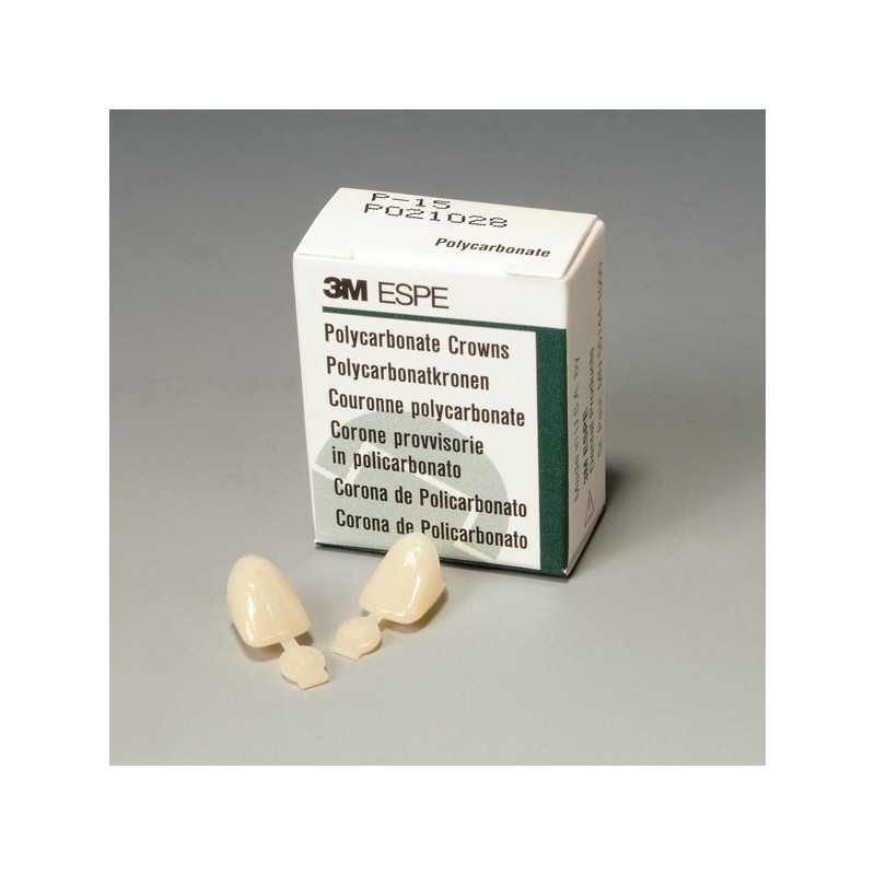 Coronas provisionales fabricadas en polilcarbonato y fibras de microvidrio. En tono universal translúcido y consistencia flexible para poder ajustarlas sin riesgo de roturas. Tienen una superficie suave para minimizar la acumulación de placa. 5 unidades.