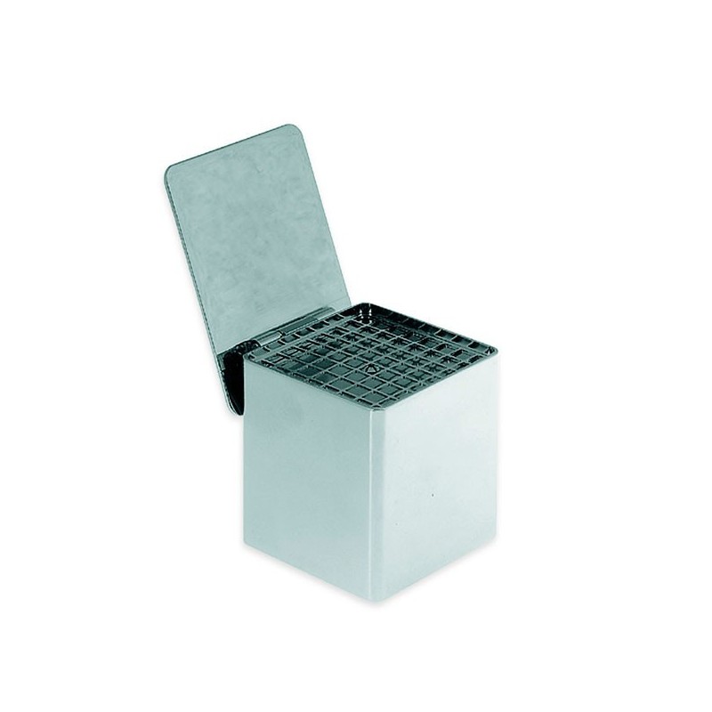 Dispensador para pellets de algodón. Fabricado en metal cromado, con tapa.