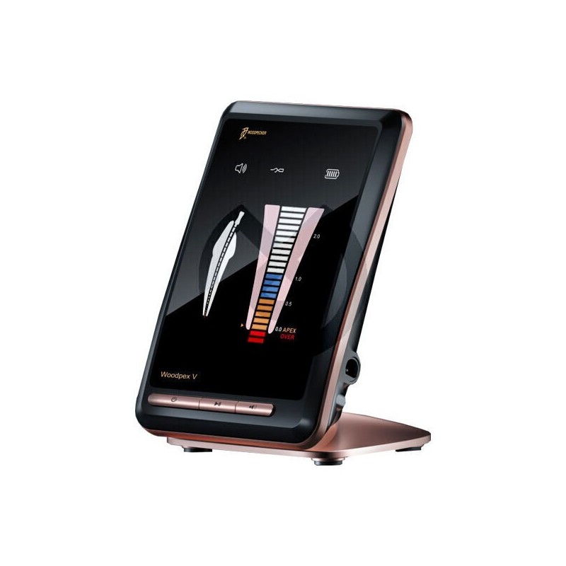 Un localizador de apical es un equipo de apoyo para tratamientos de endodoncia. Proceder a la localización de ápices manualmente, dependiendo de la sensibilidad tanto de las manos del doctor como del dolor del paciente, puede dar malos resultados debido a la baja precisión en la toma de medidas. Woodpex V de Woodpecker es un localizador de ápices con calibración automática para garantizar unas medidas más acertadas. Presenta un elegante y moderno diseño con una gran y clara pantalla LCD de 4,5" y una firme base metálica. Esta pantalla es inclinable para mayor comodidad y proporciona una fácil lectura de la trayectoria de la lima en diferentes colores que, junto a sus señales acústicas aportan más seguridad al odontólogo. Woodpex V es más preciso y avanzado y además, permite conectarse con motores de endodoncia Woodpeck con el motor Endo Smart Plus para funciones combinables. El localizador épical Woodpecker Woodpex V se basa en un sistema avanzado de tecnología DSP de medición de frecuencia múltiple anti-transferencia que ofrece la máxima precisión en la medición y trayectoria de las limas en los tratamientos de preparación del canal radicular. La medición no se verá afectada por el tipo de diente o el entorno interno del conducto radicular, como la presencia de sangre o pulpa residual.Nuevo circuito digital con módulo procesador DSP con componentes de alta precisión.Capacidad de precisión del 97.71% Los accesorios de WoodPEX V pueden ser esterilizados en autoclave para evitar infecciones cruzadas de manera efectiva.Batería recargable. CARACTERISTICAS Localizador apical con tecnología avanzada.Basado en la tecnología DSP multi-frecuencia con capacidad anti-interferencia más estable y fuerte. Conectable a Motor Endo Smart Plus para funciones combinables.Calibración automática.Pantalla LCD 4,5" luminosa, clara e inclinable. Medición precisa aún con presencia de sangre o pulpa residual en el conducto radicular.Capacidad de precisión del 97.71% Señales acústicas: el zumbador alertar? cuando la lima endo est? cerca del ápice. Elimina la interferencia.Nuevo circuito digital.Chip de procesamiento central de EE. UU. Reconocido por la industria. Bateria: 3.6V / 750mAh (Modelo: 14500)Entrada: ~ 100V-240V 50Hz / 60Hz 0.5-0.2ASalida: DC5V / 1A Consumo de energía: ?0.5WDimensiones: 84mm x 88mm x 112mm.Peso: 336 gr. Garantía: 2 años en la unidad / 6 meses en accesorios, batería y cargador.
