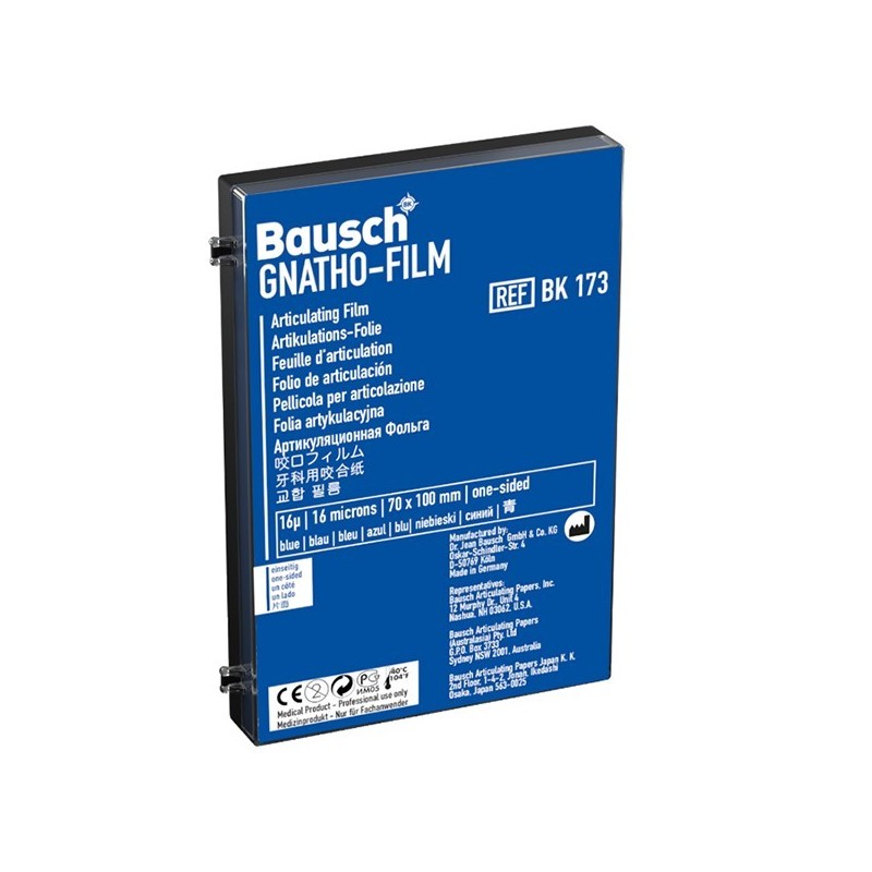 PelÌcula delgada de 16 micras, suave, especialmente extensible y resistente al desgarro con recubrimiento de color por una cara.Esta pelÌcula se adapta de forma óptima al relieve oclusal y marca con precisión todos los contactos oclusales.Especialmente concebida para el análisis de modelos en el articulador, esta pelÌcula se caracteriza por un marcado limpio y exacto, por ejemplo, sobre modelos de escayola.50 hojas color azul de 7x10 cm.