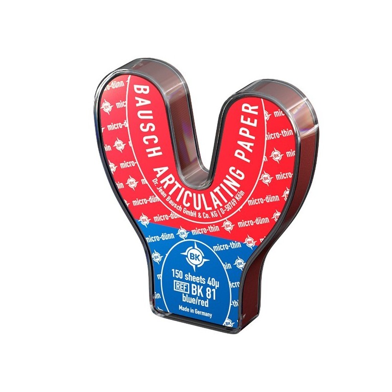 Papeles de oclusión microfinos de 40 micras. son papeles muy finos recubiertos por ambas caras con tintas lÌquidas. Debido a su pequeño grosor, estos papeles muestran un comportamiento de marcado extremadamente preciso. De este modo, se reducen significativamente los contactos defectuosos o borrosos.Su recubrimiento especial con tintas lÌquidas permite marcar claramente todos los contactos oclusales, incluso sobre materiales difÌciles de comprobar, como las cerámicas, las aleaciones metálicas, las resinas y las superficies oclusales humedecidas con saliva.Su recubrimiento cromático especial consiste en una infinidad de pequeñas microcápsulas rellenas de pigmentos.Incluso con una ligera presión de masticación, las cápsulas se abren y liberan el color de forma claramente visible. También permiten marcar de forma repetida, ya que el recubrimiento de color posee un volumen de tinta elevado.Envase de herradura, color azul y azul. 150 unidades.