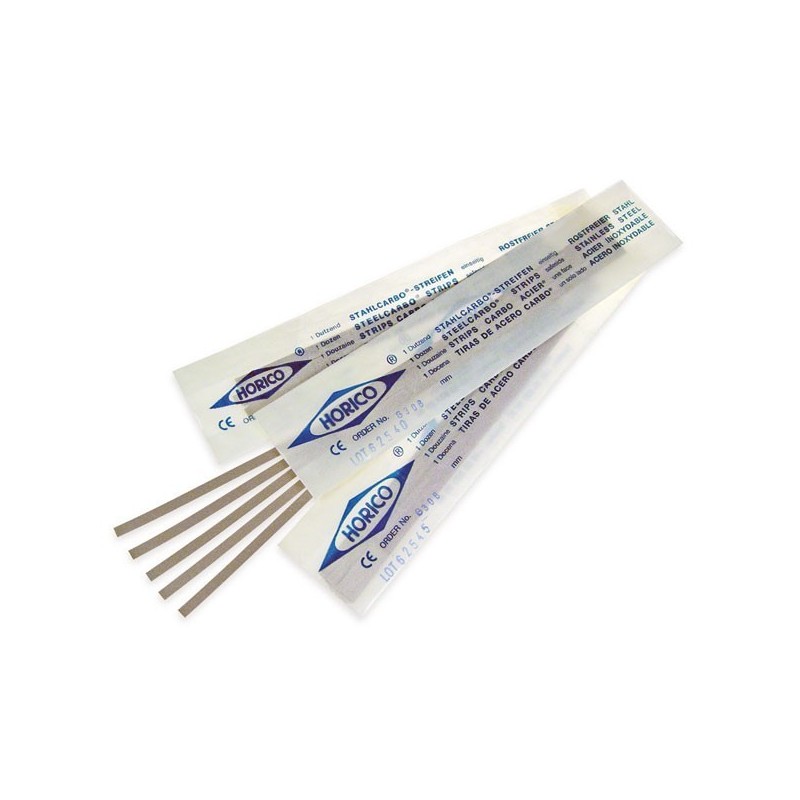 Tiras de separar abrasivas a base de corindón fijado galvánicamente en acero inoxidable en una sola cara. Antes de su empleo puede cortarse al largo deseado. Longitud 120 mm. Anchuras y grosores disponibles:- Anchura 4 mm: 304 C ? 0,09 mm. 304 ? 0,1 mm. 304 G ? 0,15 mm.- Anchura 6 mm: 306 C ? 0,09 mm. 306 ? 0,1 mm. 306 G ? 0,15 mm.- Anchura 8 mm: 308 G ? 0,15 mm.Bolsa de 12 unidades.