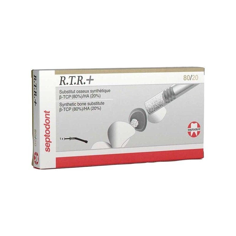 Substitución del hueso perdido tras la extracción de una pieza, tratamiento de defectos en el hueso. Material para injerto óseo durante procedimientos de levantamiento del surco.80% Bifosfato Tricalcico / 20% Hidroxiapatita